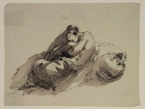 Figura femminile dormiente accanto a un'anfora. Figura femminile dormiente accanto a un'anfora