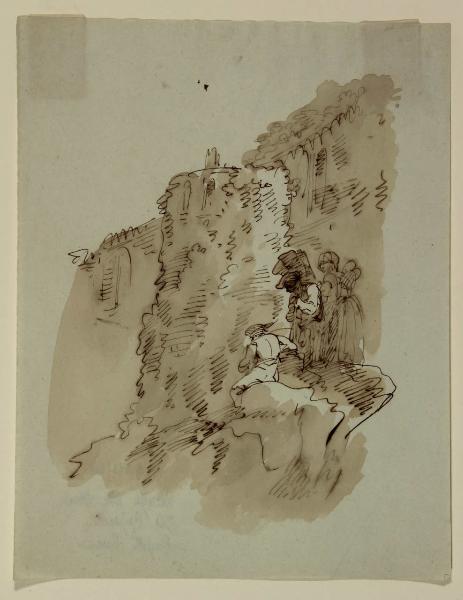 Paesaggio montuoso con figurette. Paesaggio montuoso con figurette