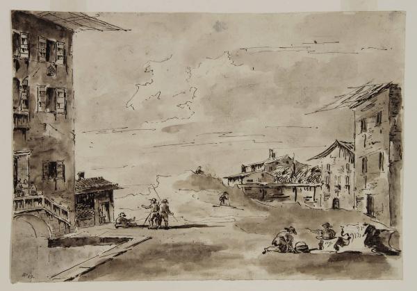 Paesaggio con case e macchiette. Paesaggio con case e macchiette
