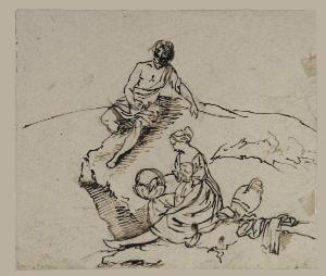 Figura maschile e femminile sedute su di un ammasso roccioso. Figura maschile e femminile sedute su di un ammasso roccioso