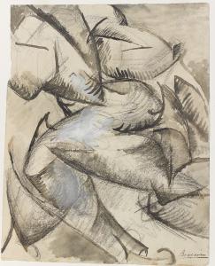 matita nera, inchiostro nero a pennello e penna e tempera bianca su carta