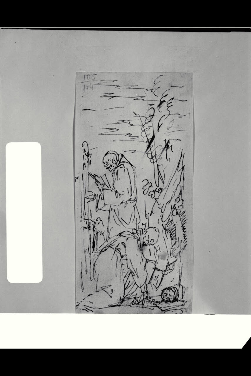 - NOTIZIE STORICO CRITICHE Il foglio è uno studio iniziale per il pannello con "Due frati in preghiera" del ciclo della chiesa bergamasca di Santa Grata inter Vites.\n
