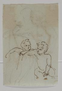 Figura seduta e due putti