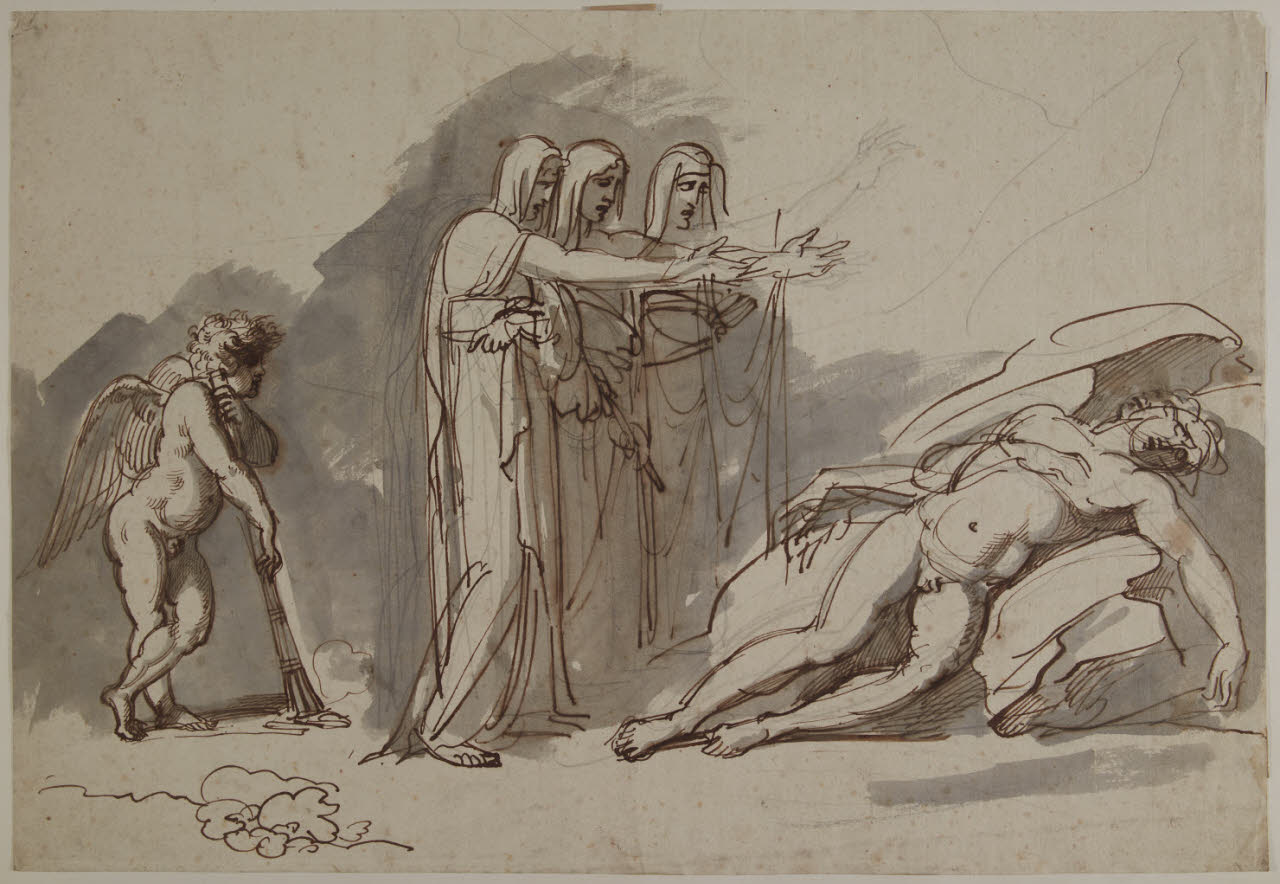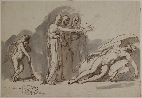 - NOTIZIE STORICO CRITICHE Al verso è ripetuto, a matita, uno schizzo della sola figura del genio appoggiato alla fiaccola.