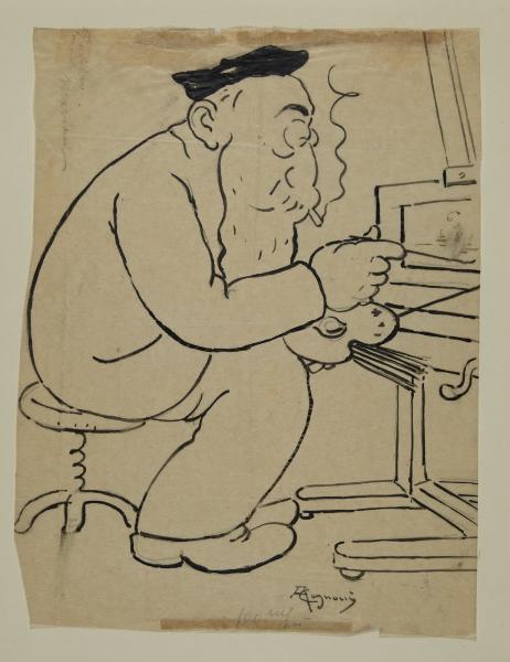 Caricatura di Pompeo Mariani in atto di dipingere