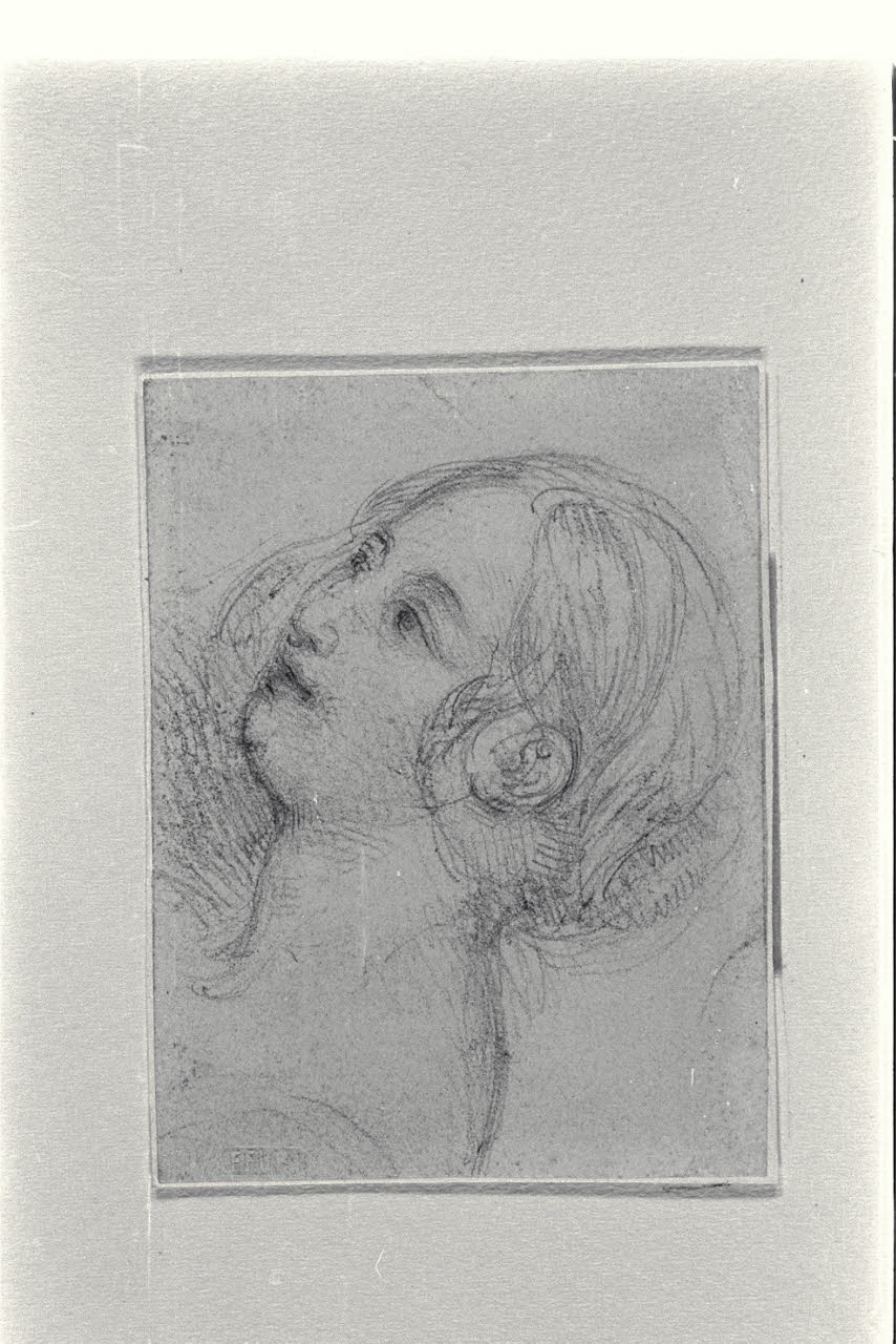 Testa di donna, acconciata con crocchia bassa