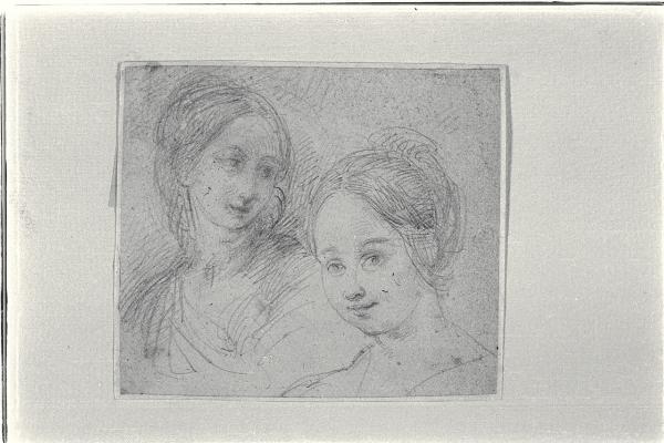 Due teste femminili acconciate con crocchia alta