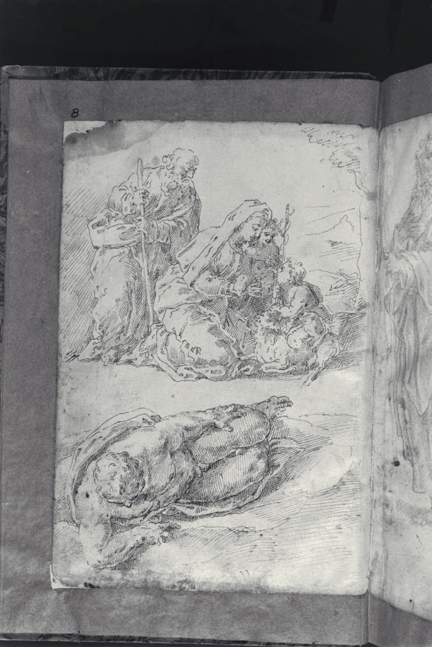 Sacra Famiglia con san Giovannino nel paesaggio; figura distesa su una nube dal Giudizio Universale. Sacra Famiglia con san Giovannino nel paesaggio; figura distesa su una nube dal Giudizio Universale