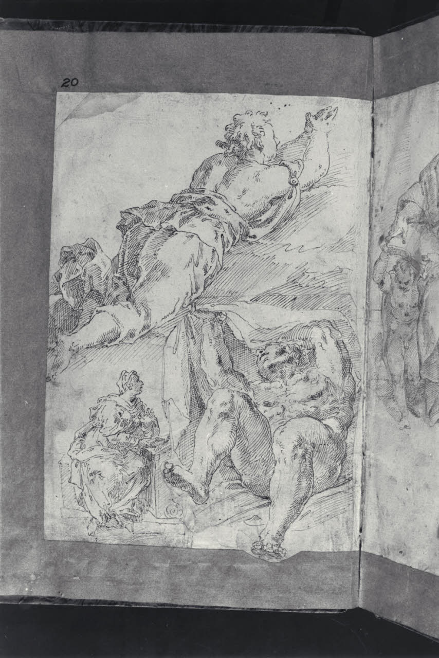 Angelo in volo; Vergine annunciata; figura maschile nuda di scorcio che si avvolge in un mantello. Angelo in volo; Vergine annunciata; figura maschile nuda di scorcio che si avvolge in un mantello
