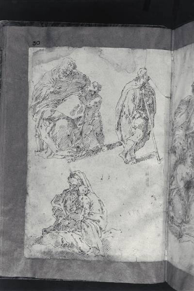 Profeta; figura con una brocca e un bastone da pellegrino; Madonna con il Bambino. Profeta; figura con una brocca e un bastone da pellegrino; Madonna con il Bambino