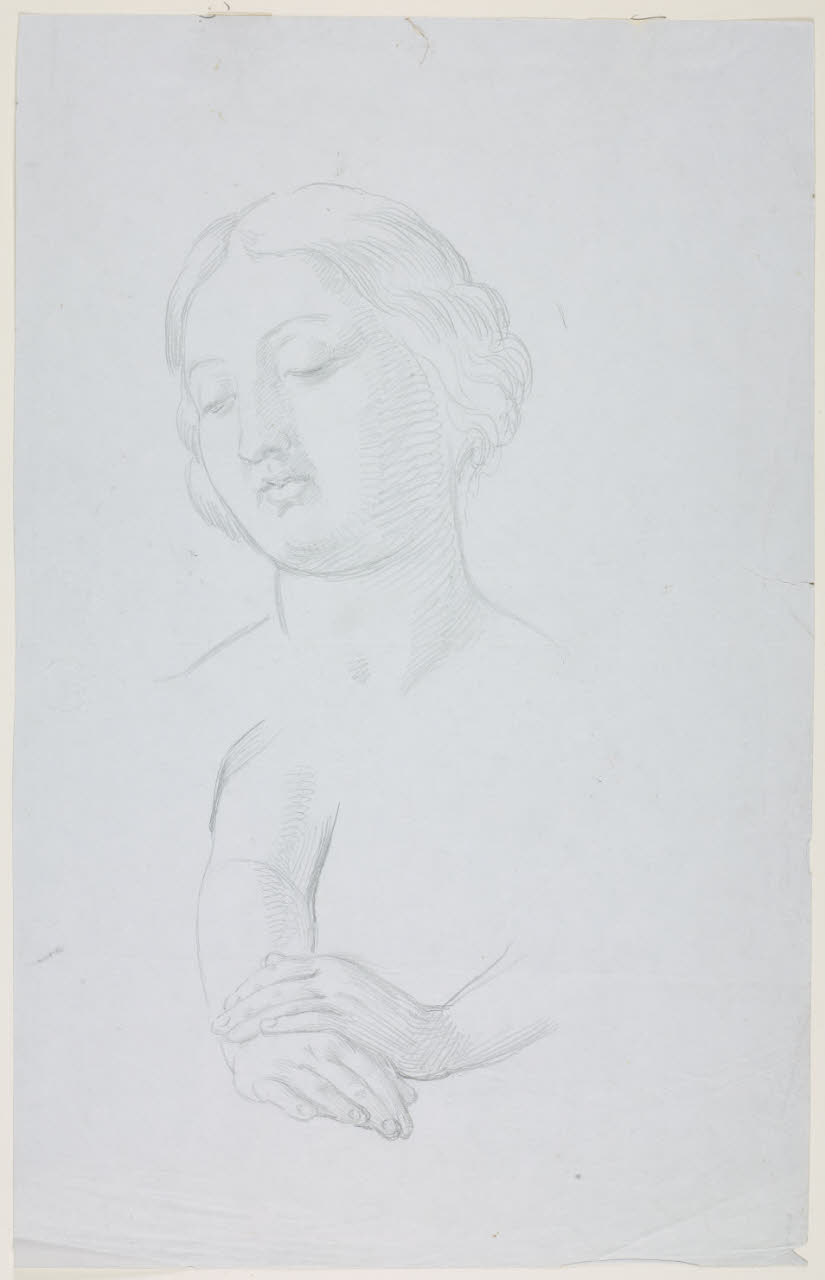 Schizzo di una testa femminile e di due mani