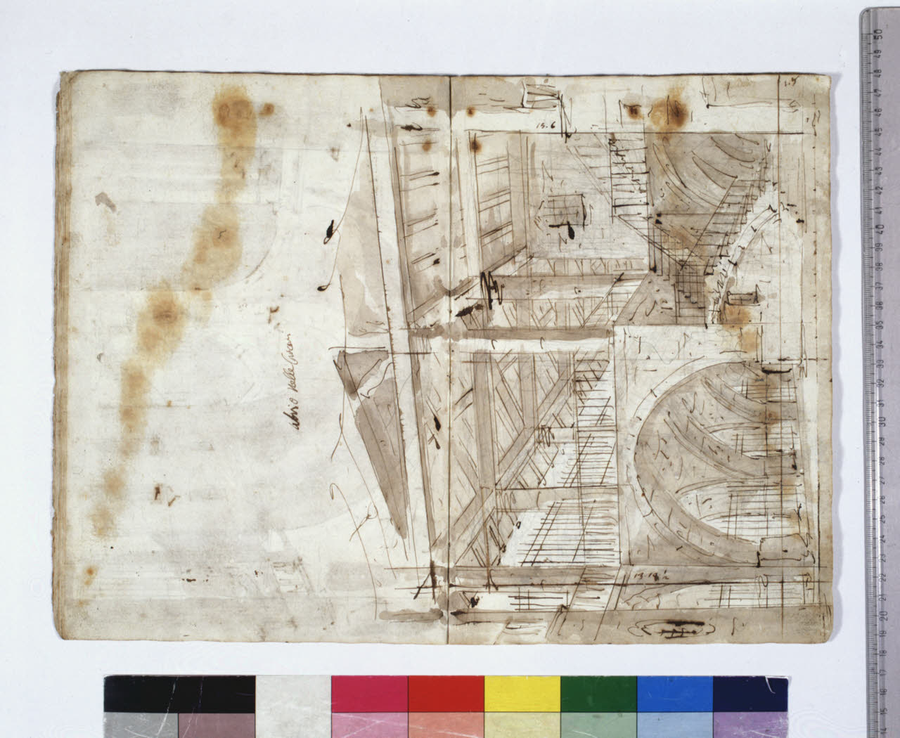 - NOTIZIE STORICO CRITICHE Grazie all'intestazione manoscritta presente sul frontespizio, e all'elenco al foglio 2, apprendiamo che l'album contiene schizzi, bozzetti, idee per l'opera "Europa riconosciuta", dramma in due atti su libretto dell'abate Mattia Verazi e musica di Antonio Salieri. Con questo titolo fu inaugurato con successo, la sera del 3 agosto 1778, il neonato Teatro alla Scala, eretto in sostituzione del distrutto Teatro Regio Ducale; le scenografie dell'opera furono curate dai fratelli Galliari.\nLa didascalia è di pugno di Fabrizio Galliari, autore dei disegni dell'album.