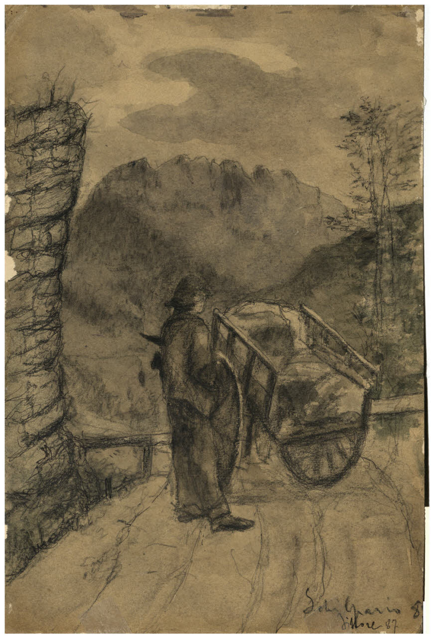 Paesaggio con uomo e carretto. Paesaggio con uomo e carretto