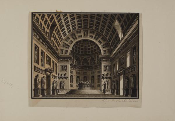 Interno di salone con nicchie, decorato di statue e di bassorilievi. Interno di salone con nicchie, decorato di statue e di bassorilievi