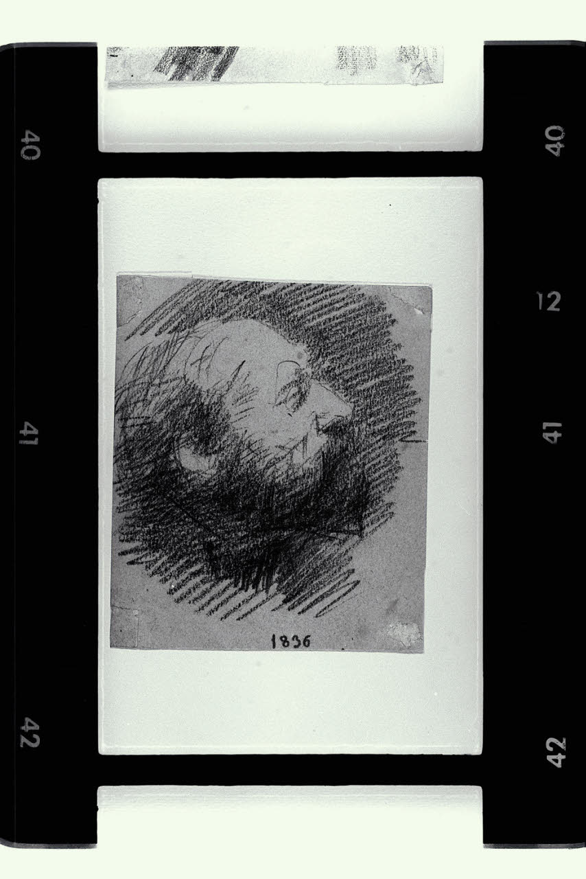 Testa di uomo barbuto di profilo