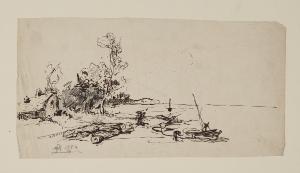 Spiaggia con barche e macchiette