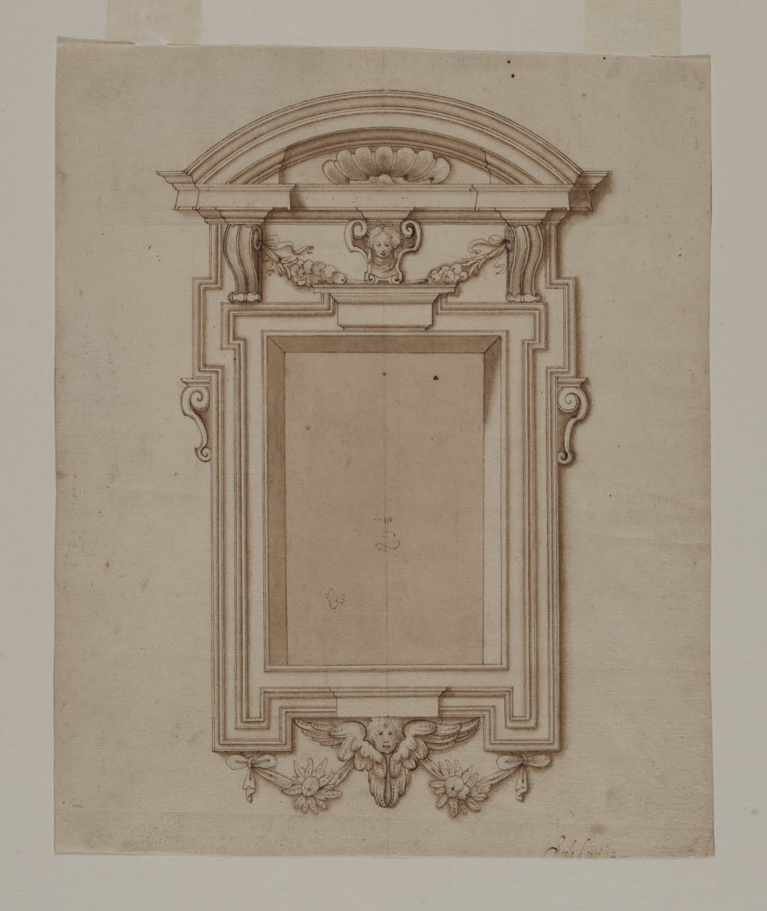 Progetto per una finestra con decorazione di encarpi e di testine d'angelo. Progetto per una finestra con decorazione di encarpi e di testine d'angelo