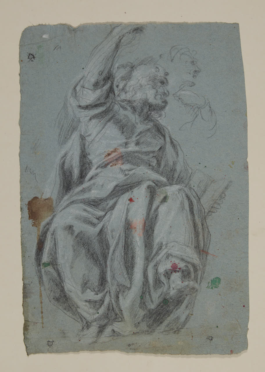 - NOTIZIE STORICO CRITICHE Il foglio è stato accostato da N. W. Neilson (1998) agli affreschi eseguiti dai Fiammenghini per la cappella di San Tommaso di Villanova nella chiesa milanese di San Marco, riconosciuto come opera di Mauro e preparatorio per il ciclo pittorico. Successivamente il disegno è stato attribuito allo Zoppo da Lugano (G. Bora).