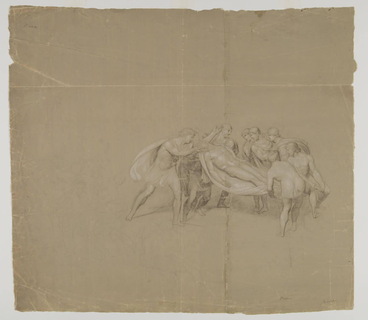 carta/ vernice fissativa (?)/ grafite/ gessetto bianco