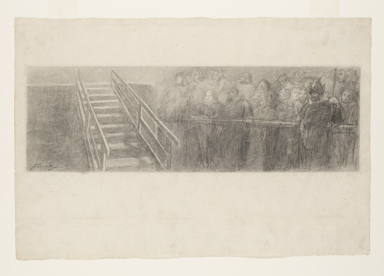 Folla che assiste al supplizio del Piazza e del Mora - "Uomini i quali morivan vittime". Illustrazione per La storia della colonna infame - Capitolo V