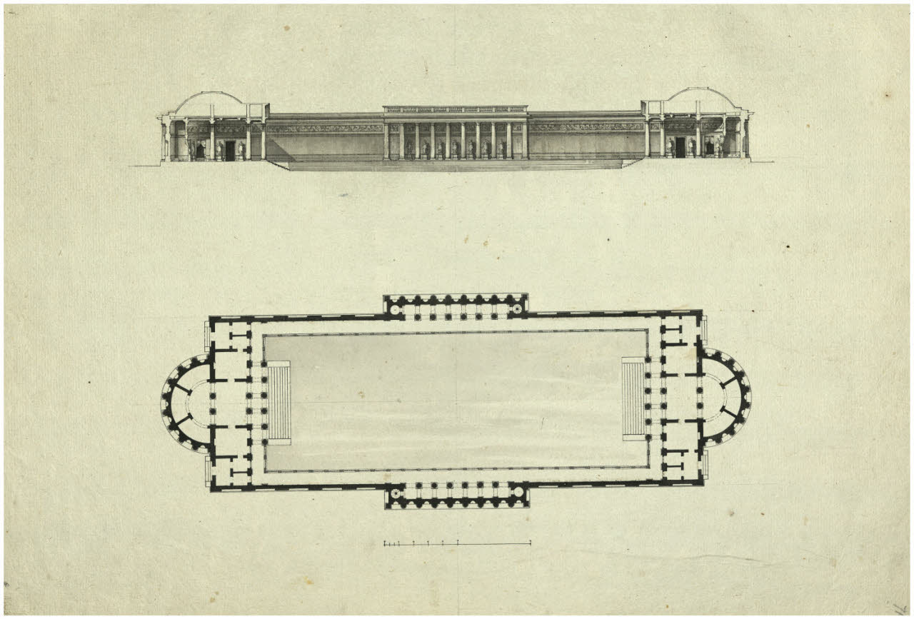 Bagno freddo nel parco di Carskoe Selo. Sezione longitudinale e pianta. Bagno freddo nel parco di Carskoe Selo. Sezione longitudinale e pianta