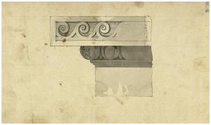 Particolare decorativo di una cornice. Prospetto, sezione. Particolare decorativo di una cornice. Prospetto, sezione
