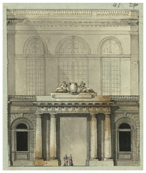 Ingresso al cortile di un palazzo. Disegno illustrativo. Prospetto. Ingresso al cortile di un palazzo. Disegno illustrativo. Prospetto