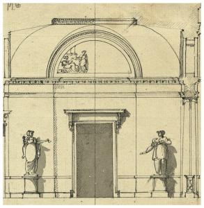 Decorazione della parete di una stanza con volta a schifo lunettata. Sezione. Decorazione della parete di una stanza con volta a schifo lunettata. Sezione