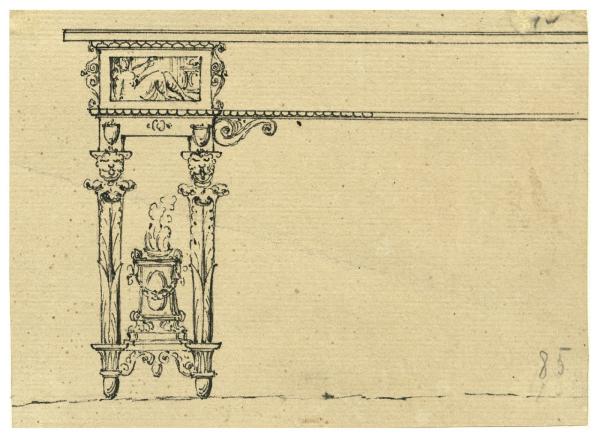 Particolare decorativo di un tavolo. Vista frontale. Particolare decorativo di un tavolo. Vista frontale
