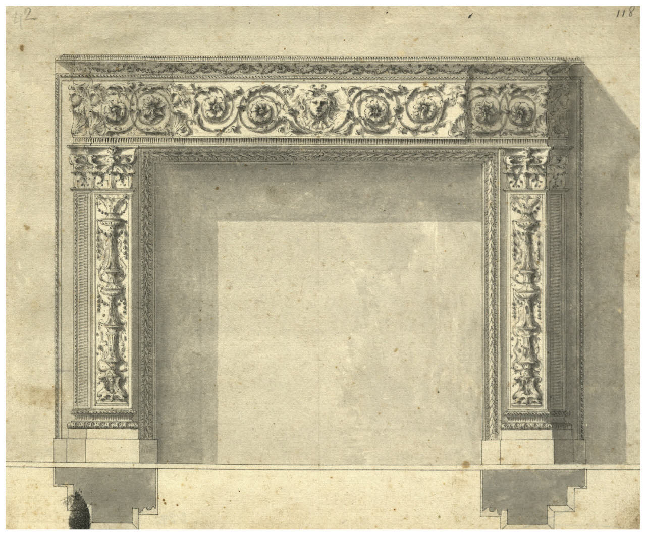 Camino. Prospetto e pianta. Camino. Prospetto e pianta