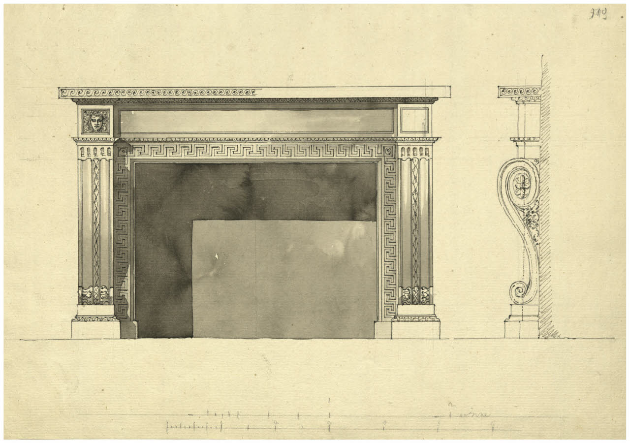 Camino. Prospetto frontale e laterale sinistro. Camino. Prospetto frontale e laterale sinistro