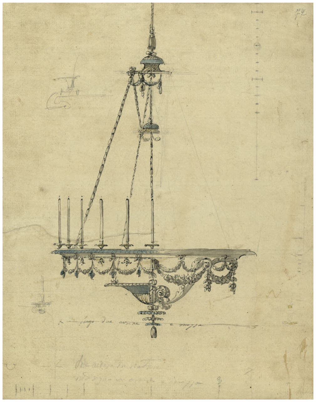 Lampadario a soffitto. Prospetti e particolari. Lampadario a soffitto. Prospetti e particolari