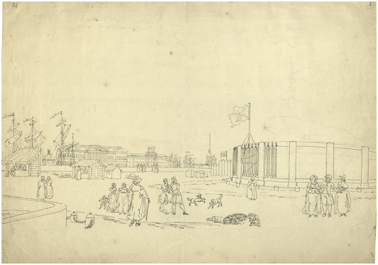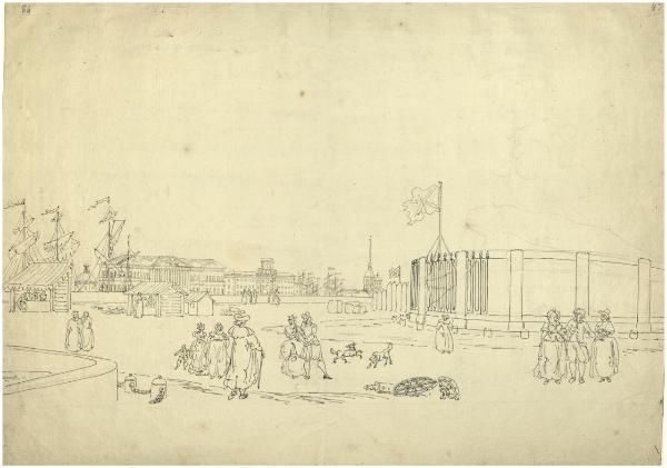 Veduta del Lungoneva a San Pietroburgo con l'Accademia delle Scienze, la Kunstkammer e il Cavaliere di bronzo. Veduta del Lungoneva a San Pietroburgo con l'Accademia delle Scienze, la Kunstkammer e il Cavaliere di bronzo