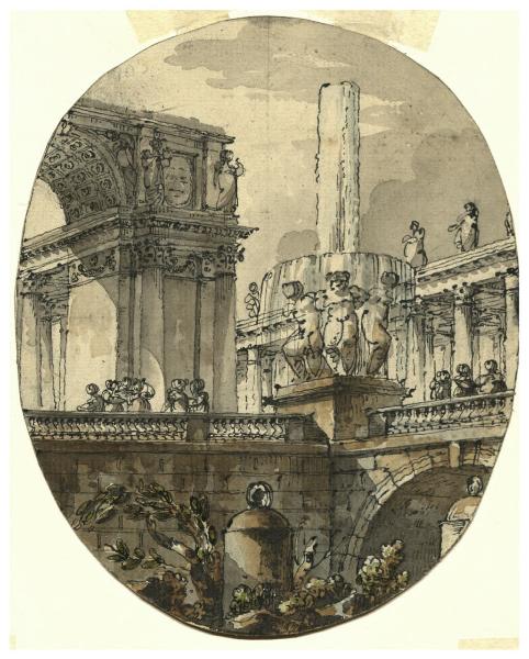 Composizione architettonica decorativa in un ovale. Composizione architettonica decorativa in un ovale