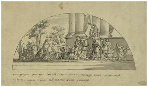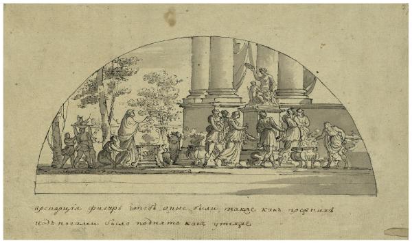 Decorazione di lunetta con scena di sacrificio. Decorazione di lunetta con scena di sacrificio