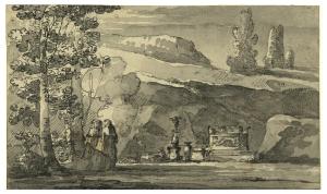Paesaggio con un sarcofago in una grotta e due figure intente a un rito. Paesaggio con un sarcofago in una grotta e due figure intente a un rito