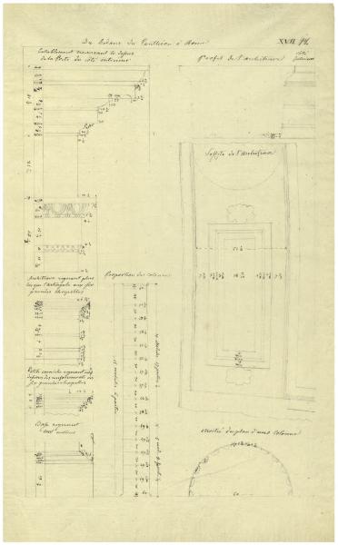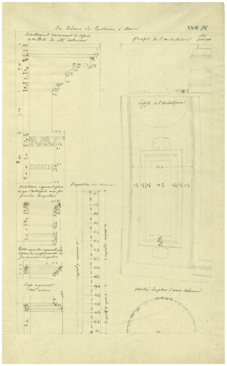 Rilievo del Pantheon (da Les Antiques Edifices de Rome). Particolari architettonici dell'interno. Rilievo del Pantheon (da Les Antiques Edifices de Rome). Particolari architettonici dell'interno