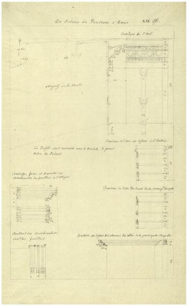 Rilievo del Pantheon (da Les Antiques Edifices de Rome). Occhio centrale e altri particolari dell'interno. Rilievo del Pantheon (da Les Antiques Edifices de Rome). Occhio centrale e altri particolari dell'interno
