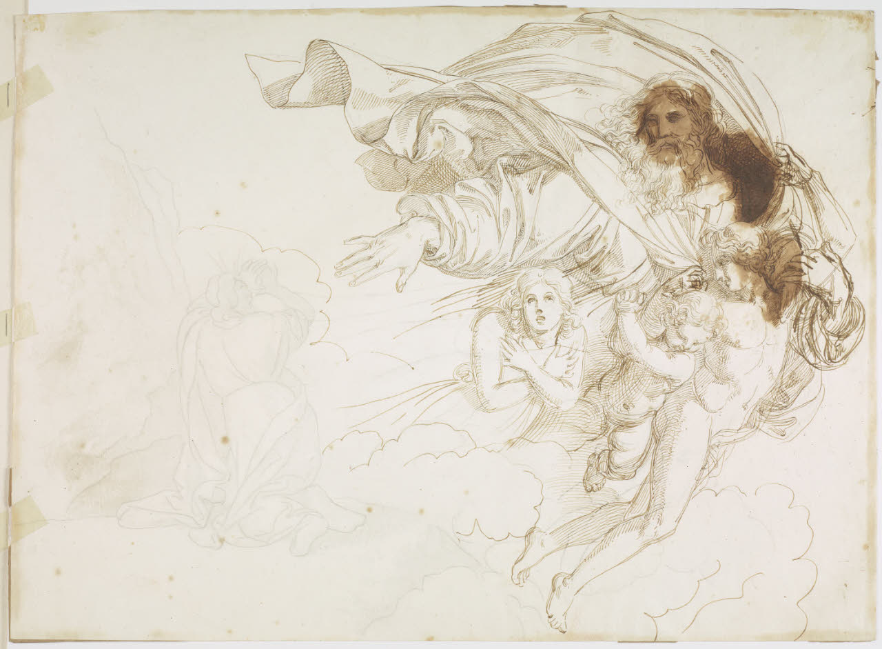 Schizzo per Mosè sul monte Sinai che vede il Redentore in cielo tra gli angeli