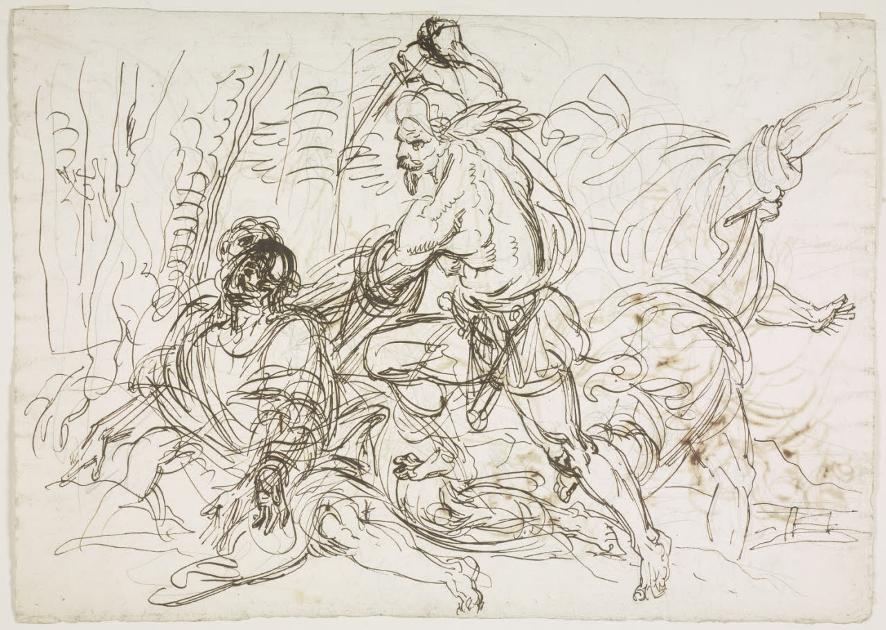 - NOTIZIE STORICO CRITICHE Il disegno è probabilmente uno schizzo preparatorio, o forse una prima idea, per una scena di carattere storico-letterario.