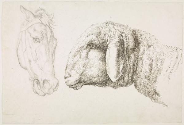 Studio della testa di un cavallo e di una pecora