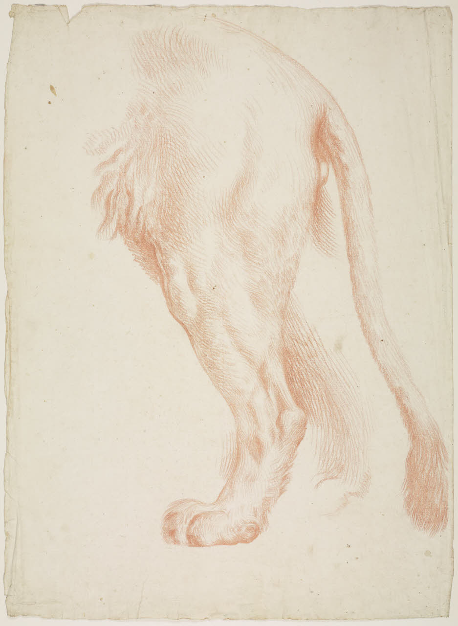 Studio delle zampe posteriori e della coda di un leone