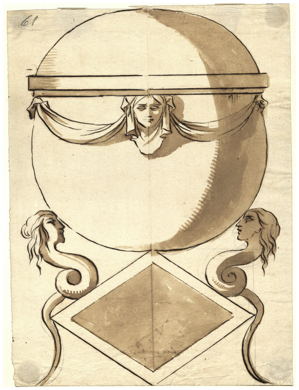 Vaso con sostegni a teste fantastiche e targa