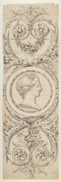 - NOTIZIE STORICO CRITICHE Il foglio, se accettiamo quanto è scritto sul verso, dovrebbe riguardare un serramento, ossia scuro, anta, imposta di una finestra o porta. I disegni di Agostino Gerli (1762-1821) conservati nel Fondo sono numerosi ( A 23, B 110, B 194, B 240, C 36-40). Gerli è uno degli ingegni più avvincenti del Neoclassicismo italiano come appare in questa piccola opera di rara seduzione. Si veda l'articolo di Giuseppe Morazzoni "Un artista milanese alla Corte di Luigi XV" (in "La martinella". 1953, p. 481 e sgg.).\n[Beretti - Gonzalez Palacios 2014]