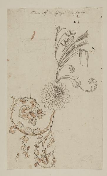 - NOTIZIE STORICO CRITICHE La scritta sul disegno attesta come esso fosse un'idea per la decorazione sulla fiancata di un "secrétaire" eseguito per "S. A. R." nel maggio 1790. Questo motivo compare su ambedue le fiancate inferiori di un "secrétaire conservato nella palazzina di Stupinigi e proveniente da Sala e dal Ducato di Parma (Gonzalez-Palacios 1986, I, p. 272; II, fig. 608). Si vedano anche i disegni: A 177, B 110 bis, C 97 e E 17.\n[Beretti - Gonzalez Palacios 2014]