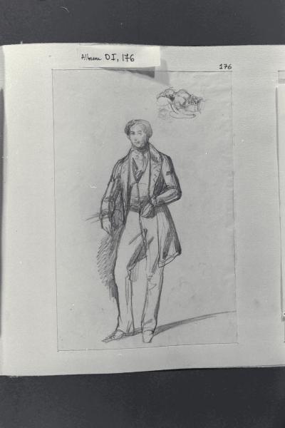 Figura maschile stante e schizzo di figuretta