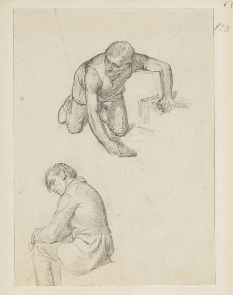 Figura maschile seduta e figura maschile inginocchiata. Figura maschile seduta e figura maschile inginocchiata