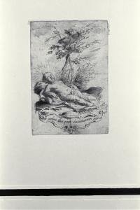 Il bambino Gesù dormiente per terra, su un lenzuolo, presso ad un gruppo di alberi. Il bambino Gesù dormiente per terra, su un lenzuolo, presso ad un gruppo di alberi
