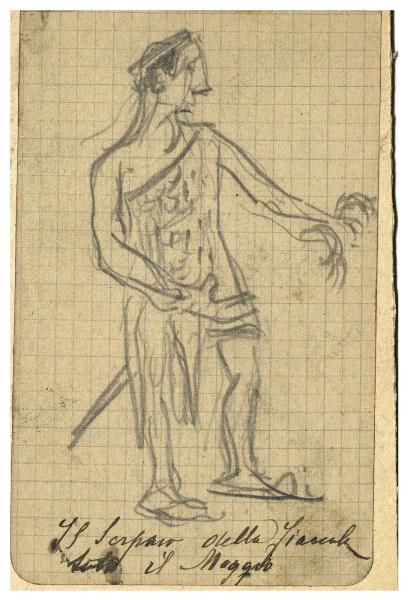 Caricatura di figuretta maschile in costume teatrale. Caricatura di figuretta maschile in costume teatrale