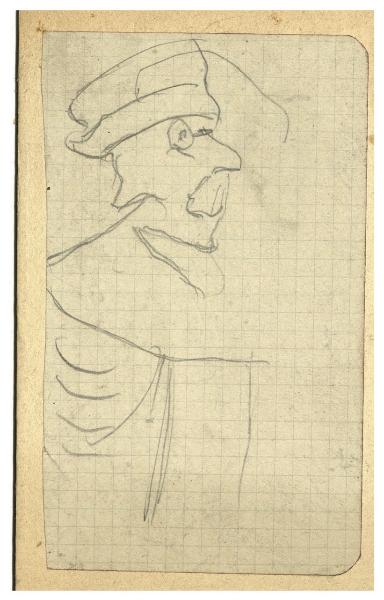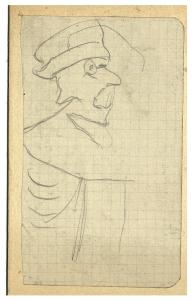 Caricatura di figuretta maschile in busto in costume teatrale. Caricatura di figuretta maschile in busto in costume teatrale